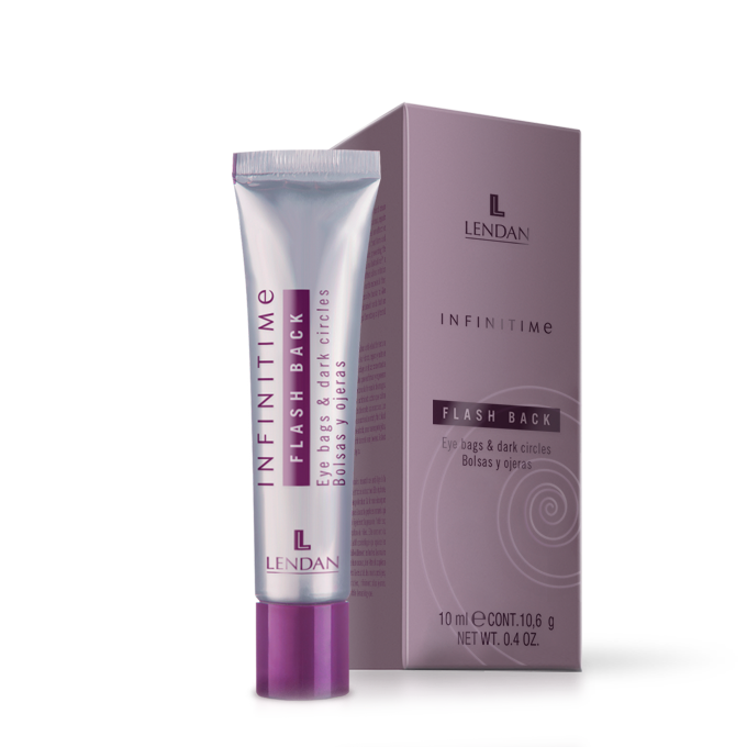 Lendan Infinitime Flash Back es un sérum contorno de ojos y labios de efecto inmediato, diseñado para reducir bolsas, ojeras y suavizar líneas de expresión, revitalizando la mirada y el contorno labial desde la primera aplicación.